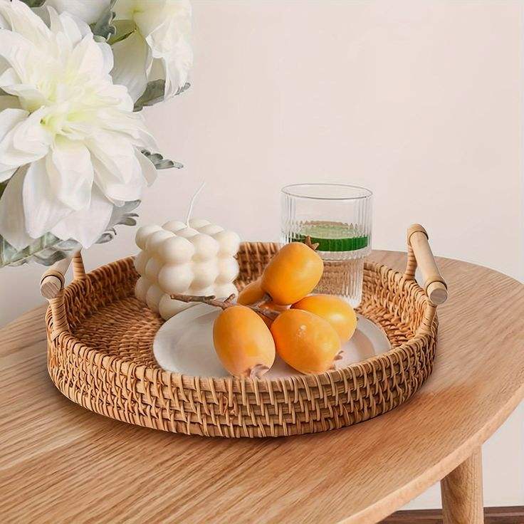 Plateau en rotin de bambou fait main plateau en rotin avec poignée tissé à la main rond haut mur plateaux de séparation des aliments multi-usages