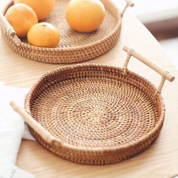 Plateau en rotin de bambou fait main plateau en rotin avec poignée tissé à la main rond haut mur plateaux de séparation des aliments multi-usages