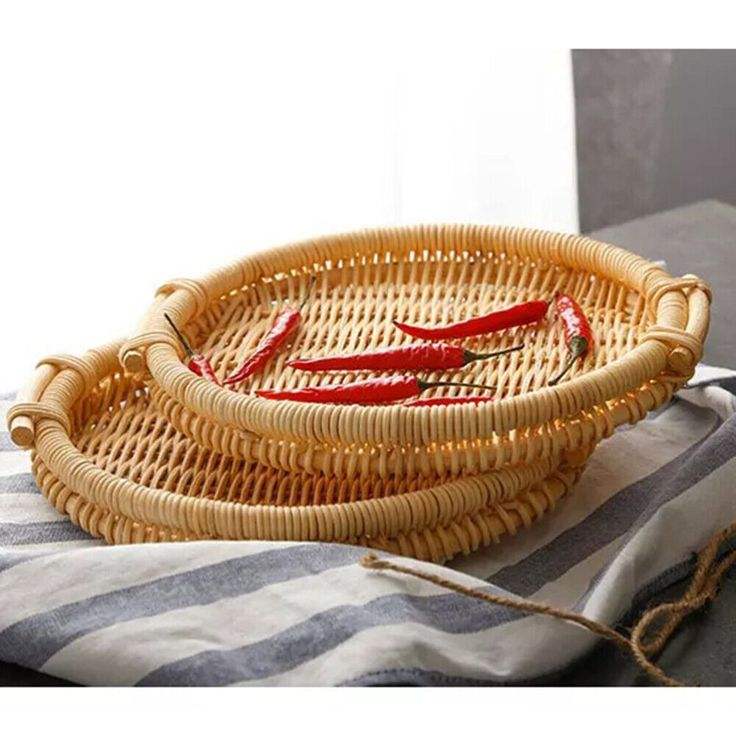 Plateau en rotin de bambou fait main plateau en rotin avec poignée tissé à la main rond haut mur plateaux de séparation des aliments multi-usages