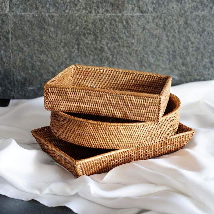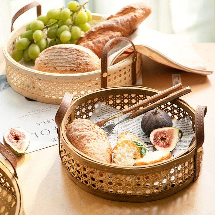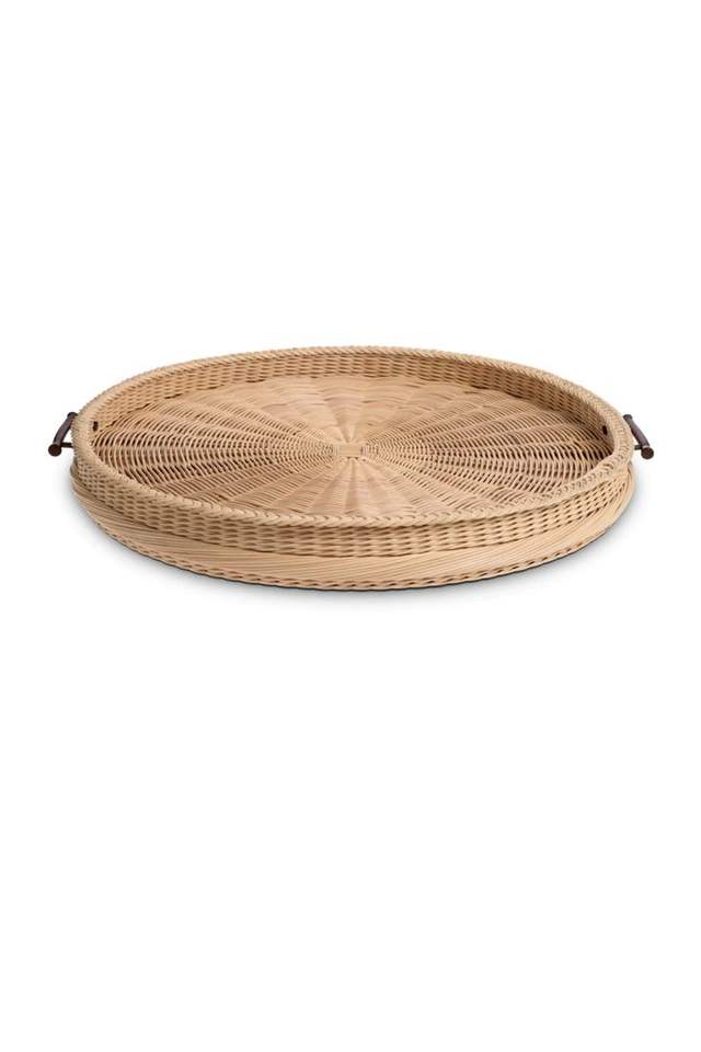 Plateau en rotin de bambou fait main plateau en rotin avec poignée tissé à la main rond haut mur plateaux de séparation des aliments multi-usages