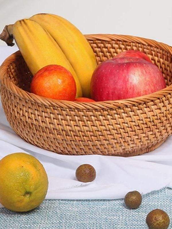 Plateau en rotin de bambou fait main plateau en rotin avec poignée tissé à la main rond haut mur plateaux de séparation des aliments multi-usages