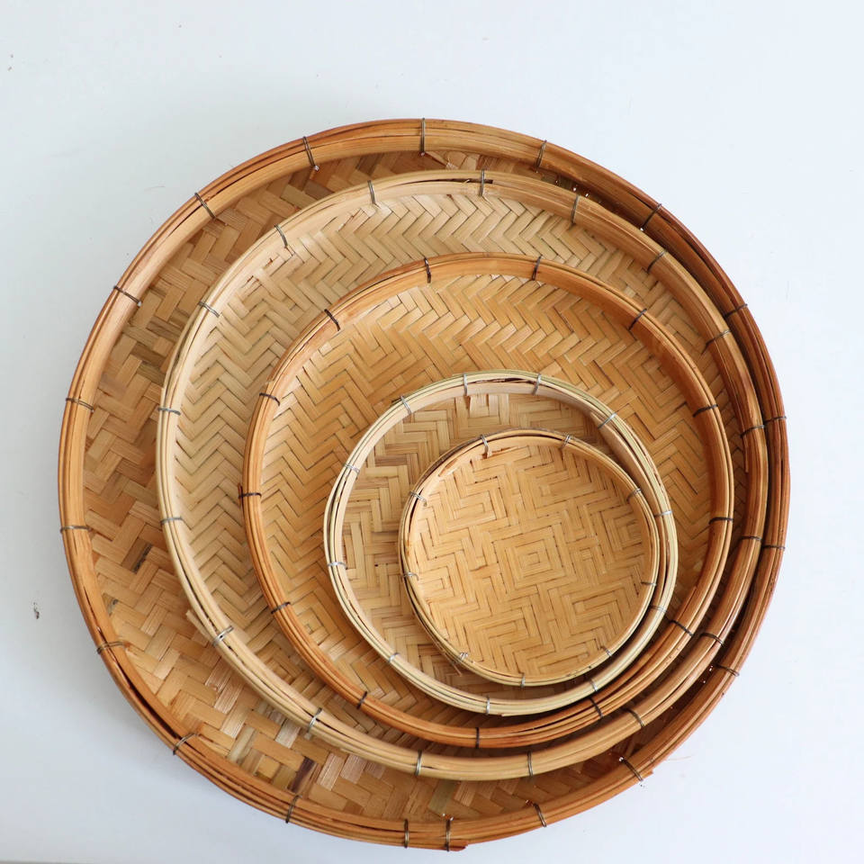 Plateaux en bambou faits à la main, plateaux de service décoratifs faits à la main, plats, plateaux ronds, panier de décoration