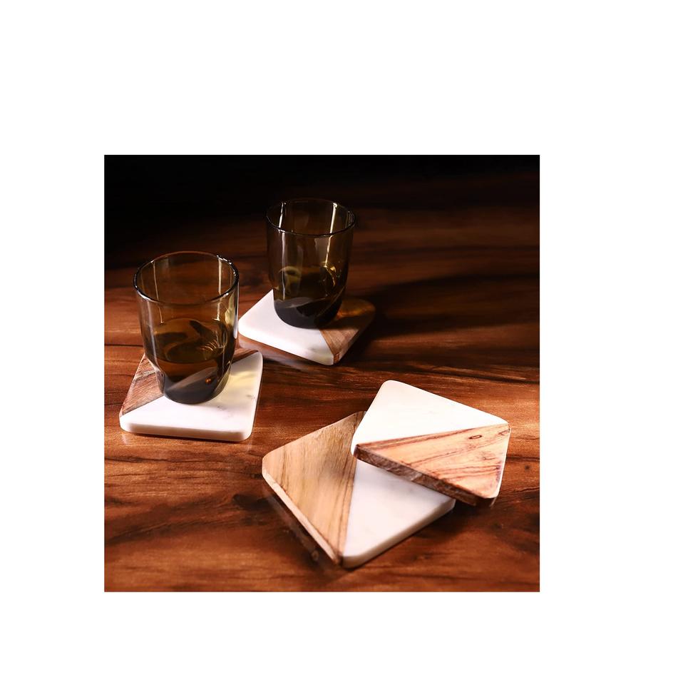 Sous-verres faits à la main en bois de bambou et pierre de marbre Sous-verres sans bambou naturel durable avec sous-verre carré élégant