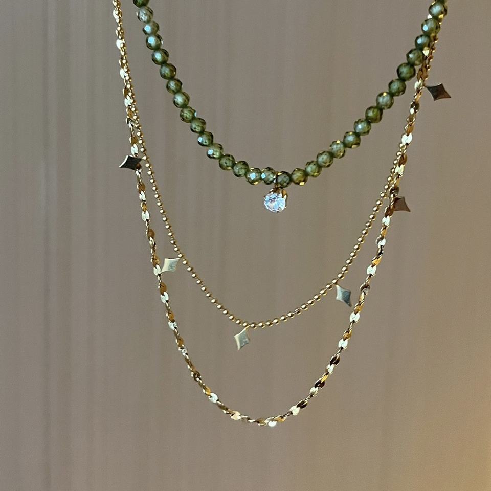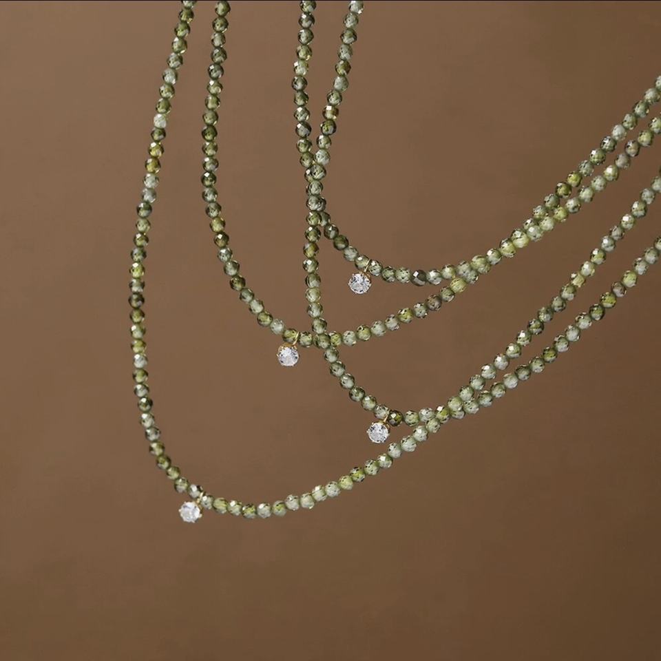 Collier en perles fait main, chaîne de clavicule, collier en pierre de cristal naturelle haut de gamme, zircon vert dégradé, design simple à plusieurs niveaux, Wenchi Chine