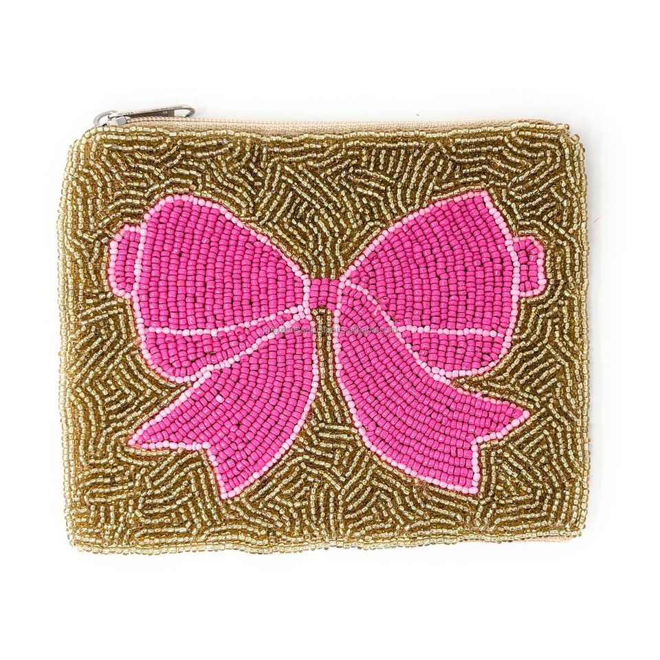 Porte-monnaie anti-vol perlé fait main avec nœud, pochette zippée brodée personnalisée, sangle chaîne, porte-cartes souple, cadeau pour femmes et filles, vente en gros