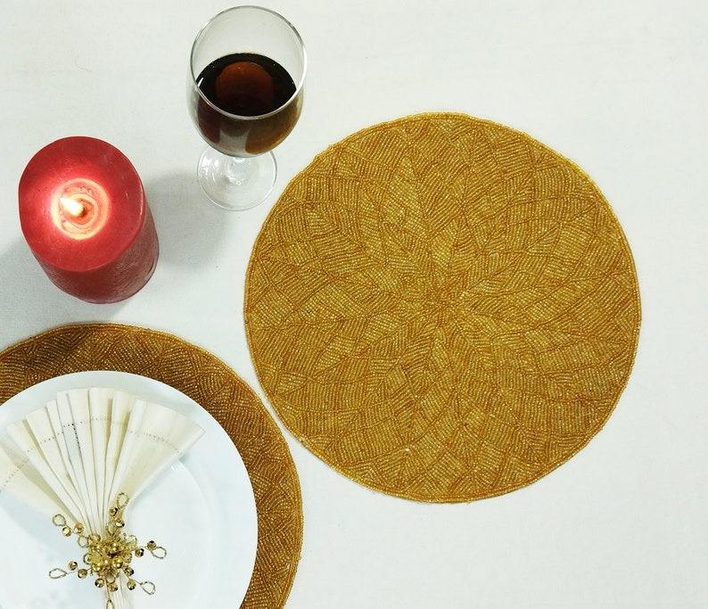 Set de table de Noël fait main avec des perles, représentant le Père Noël avec des détails de houx, décoration de table festive pour les fêtes d'hiver