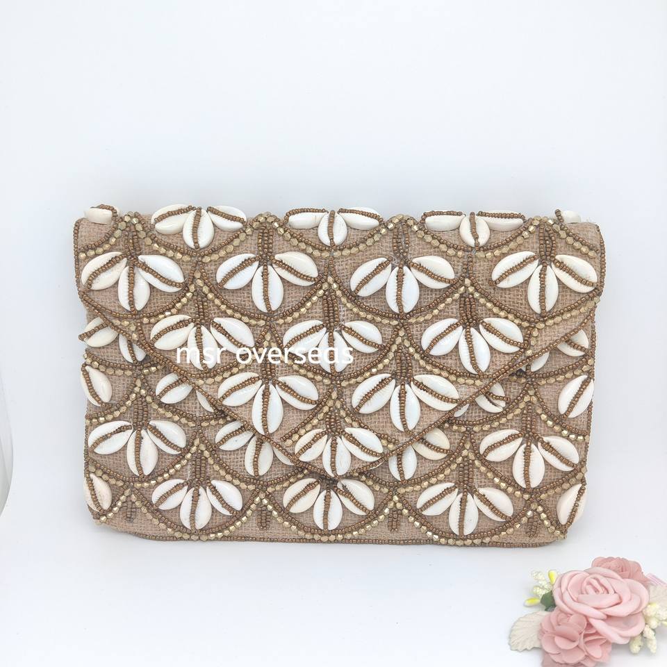 Pochette de perles faites à la main frais arrivée inde prêt à expédier prix de gros bouton lettre Polyester Messenger sac à main