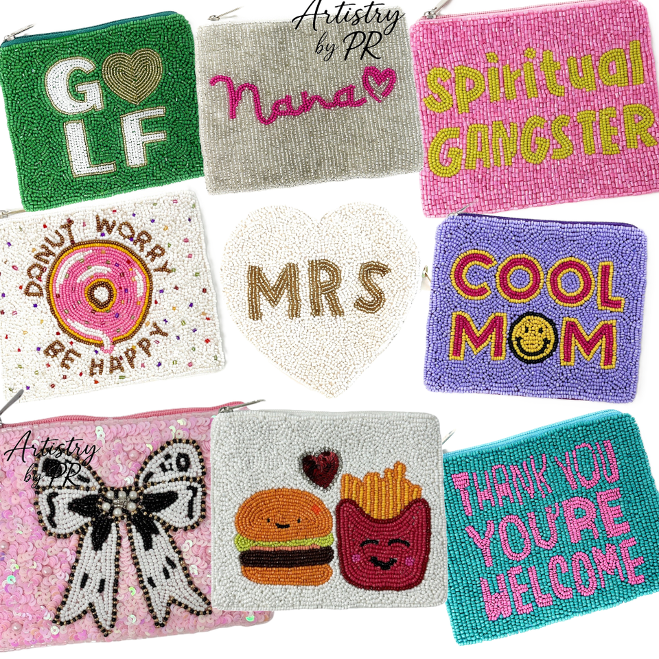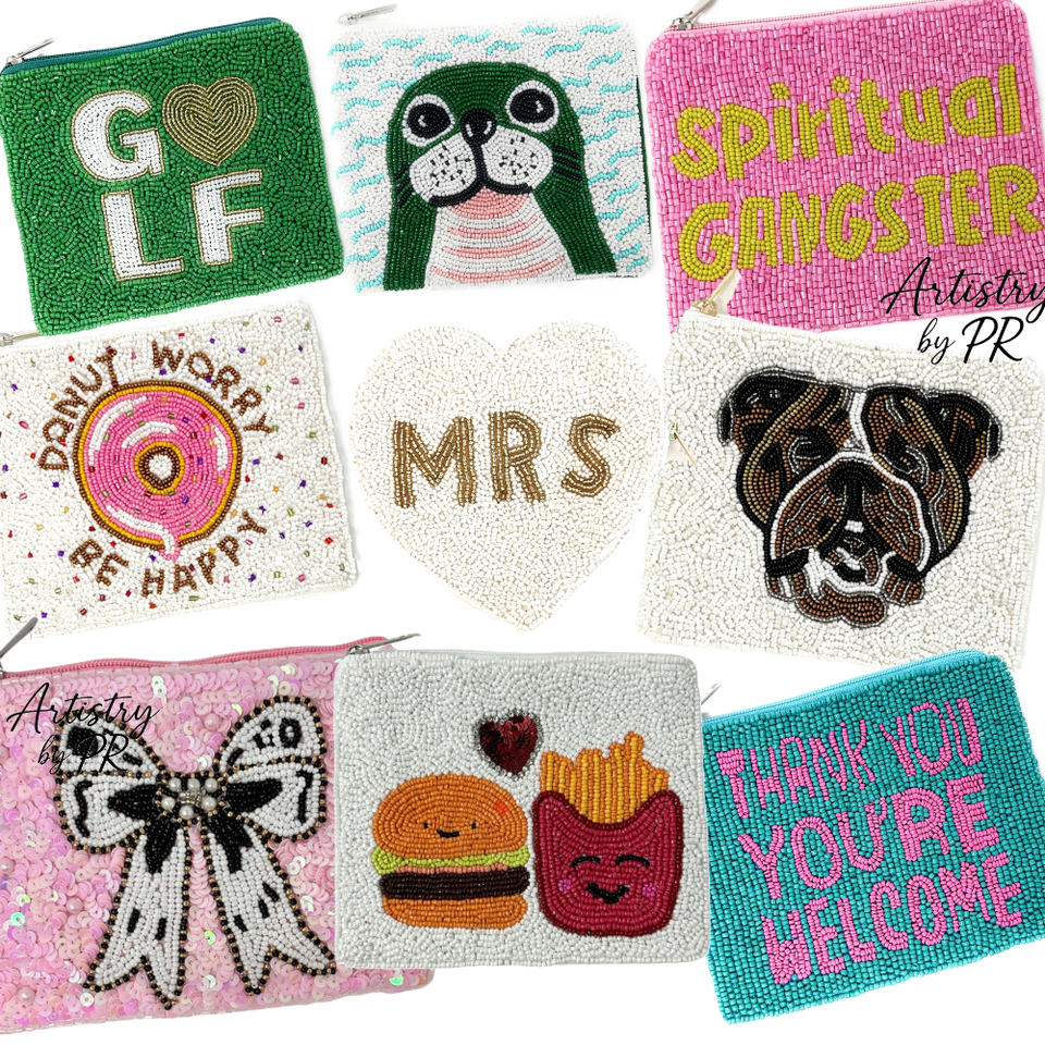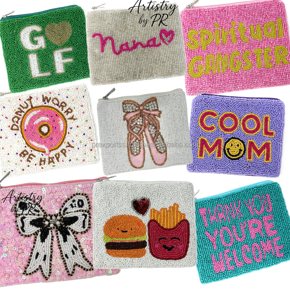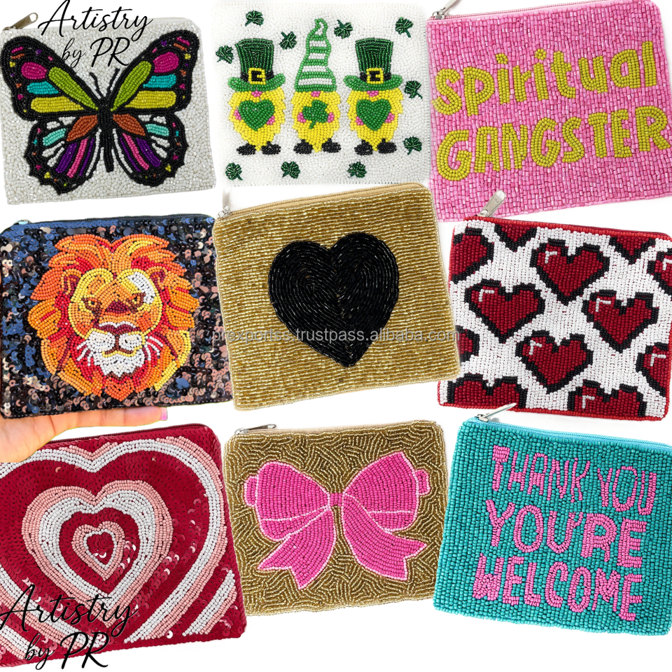 Pochette à monnaie perlée faite main, mini pochette brodée, sac personnalisé avec motif animal et texte, cadeau promotionnel tendance, avec chaîne, vente en gros