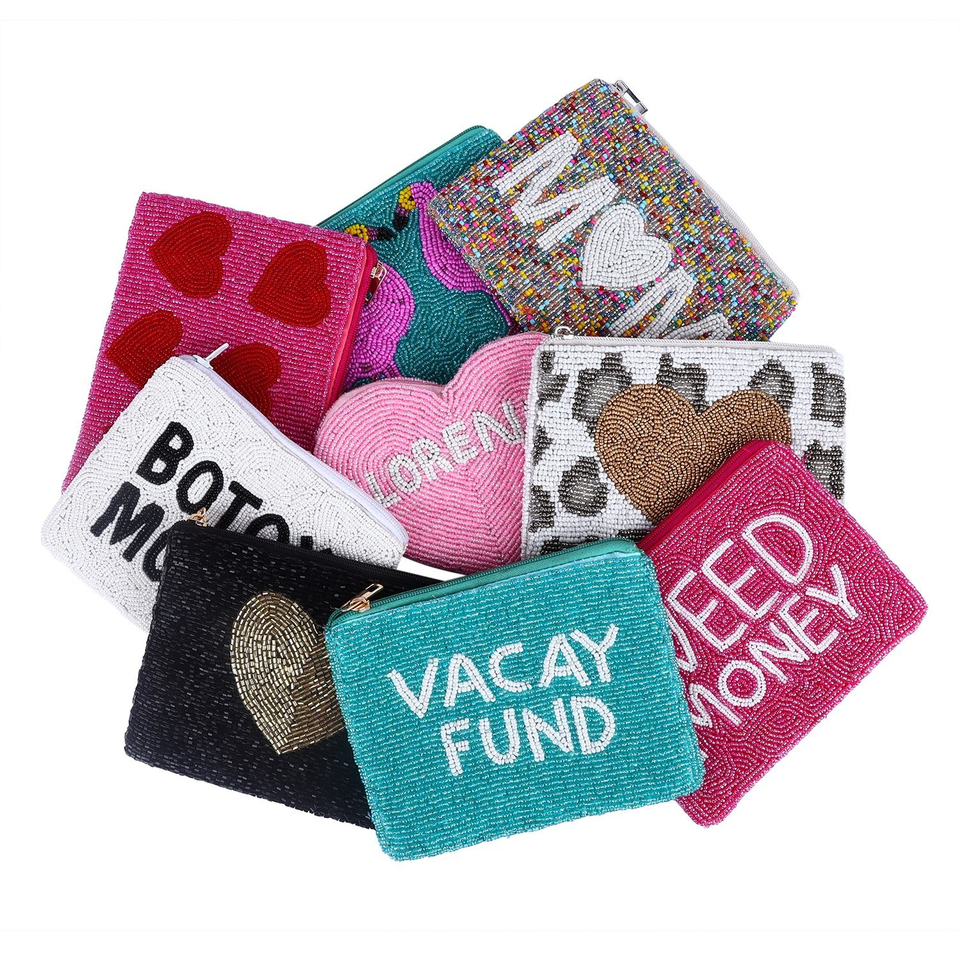 Porte-monnaie en coton brodé à la main avec des perles pour adolescents, couleur et design personnalisables, pochette en gros