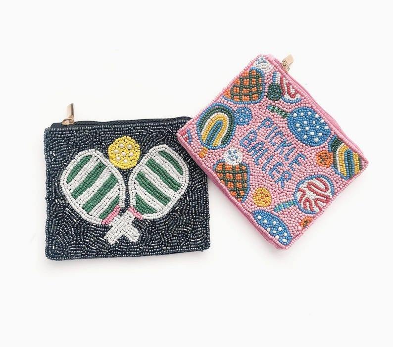 Porte-monnaie miniature unisexe fait main avec broderie perlée, écologique, durable, avec citation amusante pour maman, fermeture éclair, personnalisé, en coton et soie, tendance