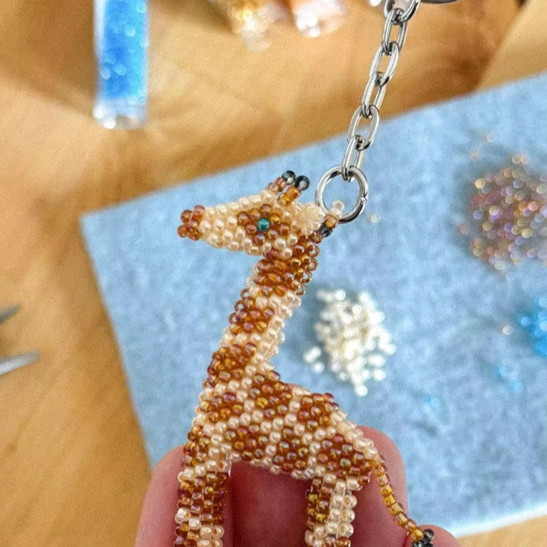 Porte-clés girafe en perles fait main, breloque pour sac animal de safari