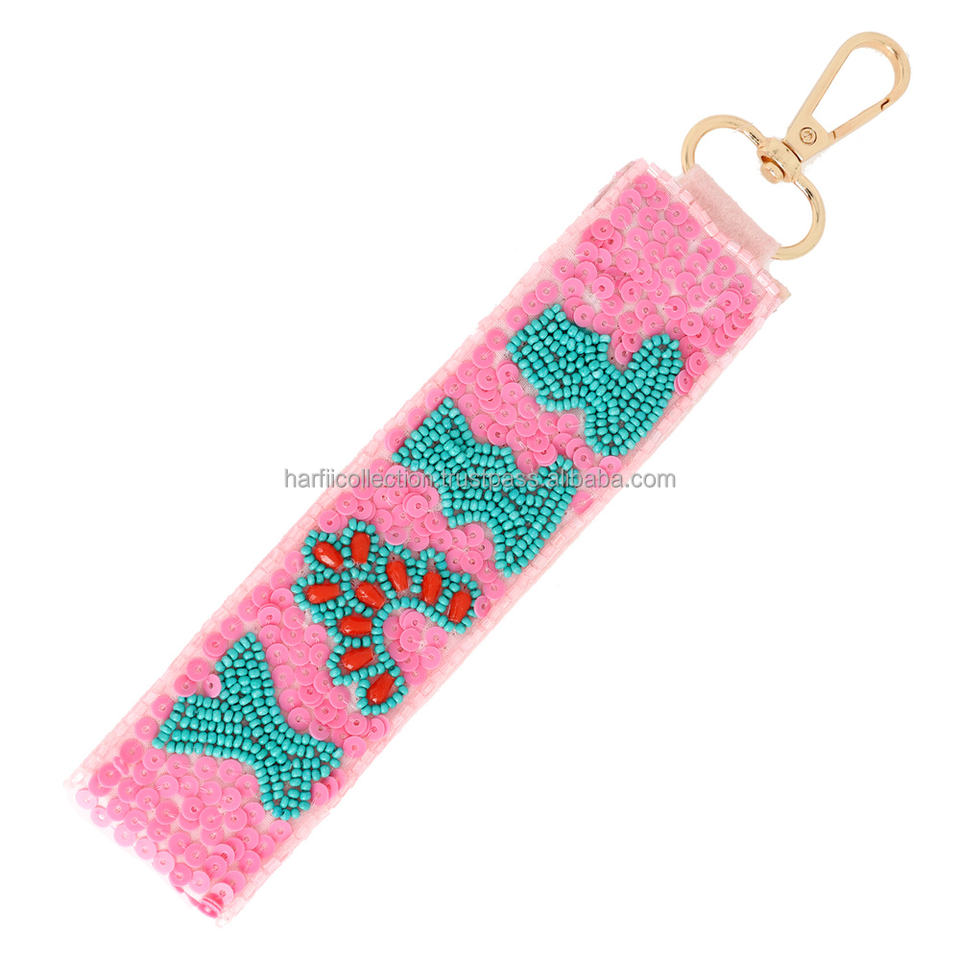 Porte-clés perlé fait main pour femmes haute qualité personnalisation personnalisée en acier inoxydable en gros cadeau de Saint Valentin