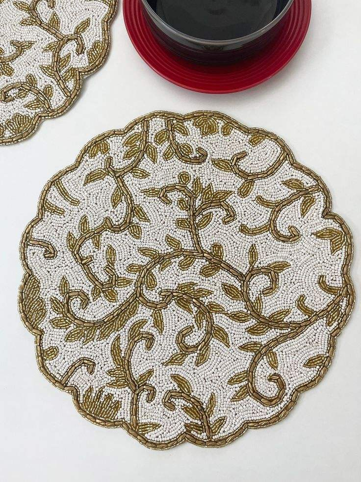 Napperon perlé fait à la main pour support résistant à la chaleur en forme de coeur de table et napperon en perles de verre blanc véritable par glowin fashion