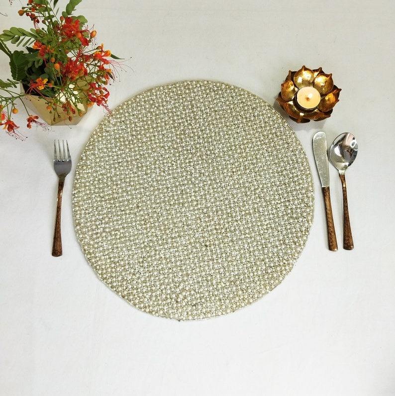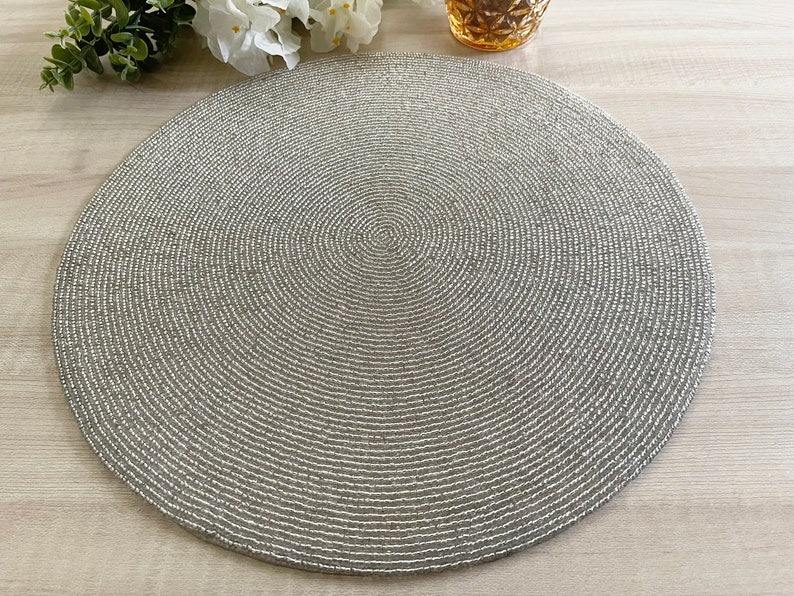 Set de table fait main en perles pour vaisselle et table à manger, perles noires et blanches, forme rectangulaire, set de table doux