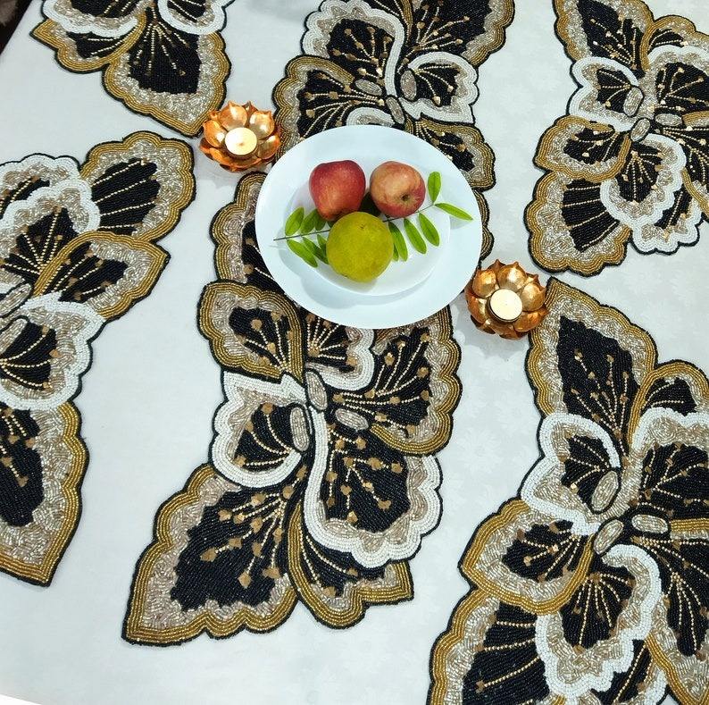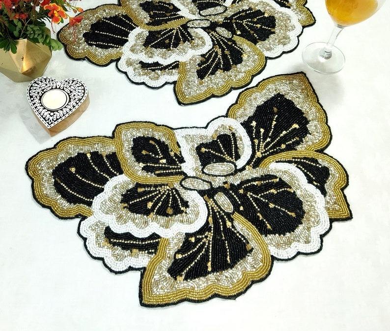 Handmade Luxury Eco-Friendly Beaded Placemat with Vintage Roman Empire Embroidery for Home Wedding Party Decor
