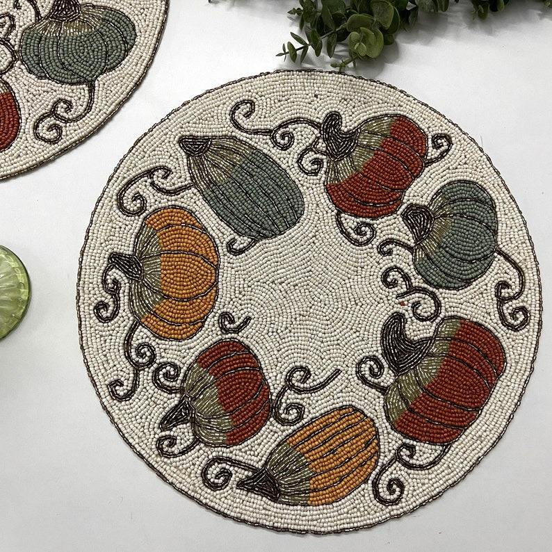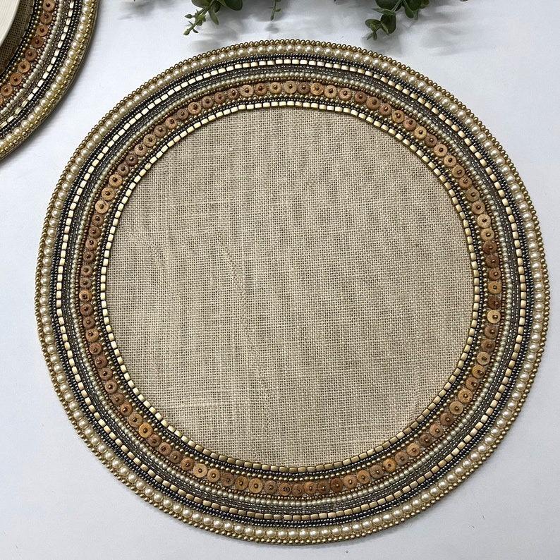 Handmade Beaded Placemats and Coasters, Boho Dining Table Mats, Cotton Thread Kitchen Decor