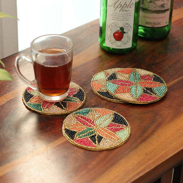 Sous-verres ronds faits à la main pour table à manger, broderie complexe avec des perles de rocaille, élégants et durables