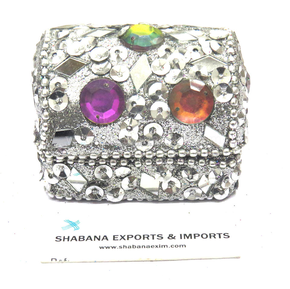 Boîte à bijoux carrée artisanale perlée, décorative, avec art du lac et paillettes, organisateur de bibelots pour femmes, pour bijoux et ornements