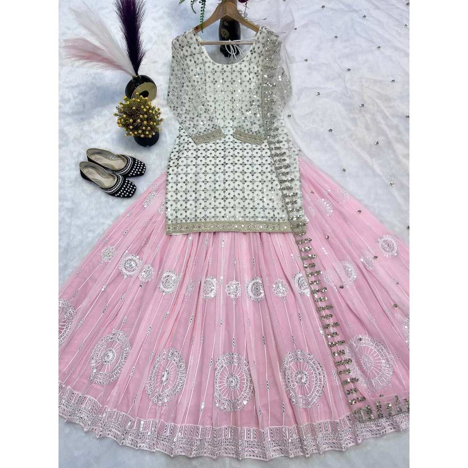 Lehenga de soirée fait main, magnifique, coupe trapèze, avec dupatta fantaisie, taille empire, en tissu organza
