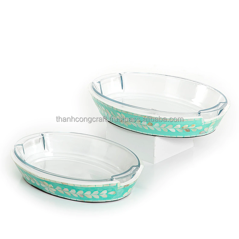 Plateau de service fait à la main de meilleure conception nacre naturelle verre coloré matériau MDF taille personnalisée artisanat de haute qualité