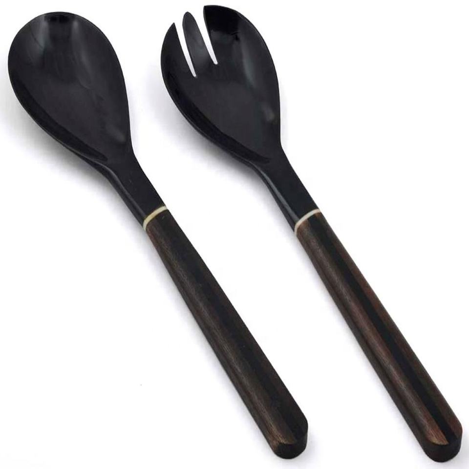Meilleurs ensembles de couverts faits à la main cuillère en corne véritable double couleur cuillère à couverts brillante cuillères à couverts disponibles