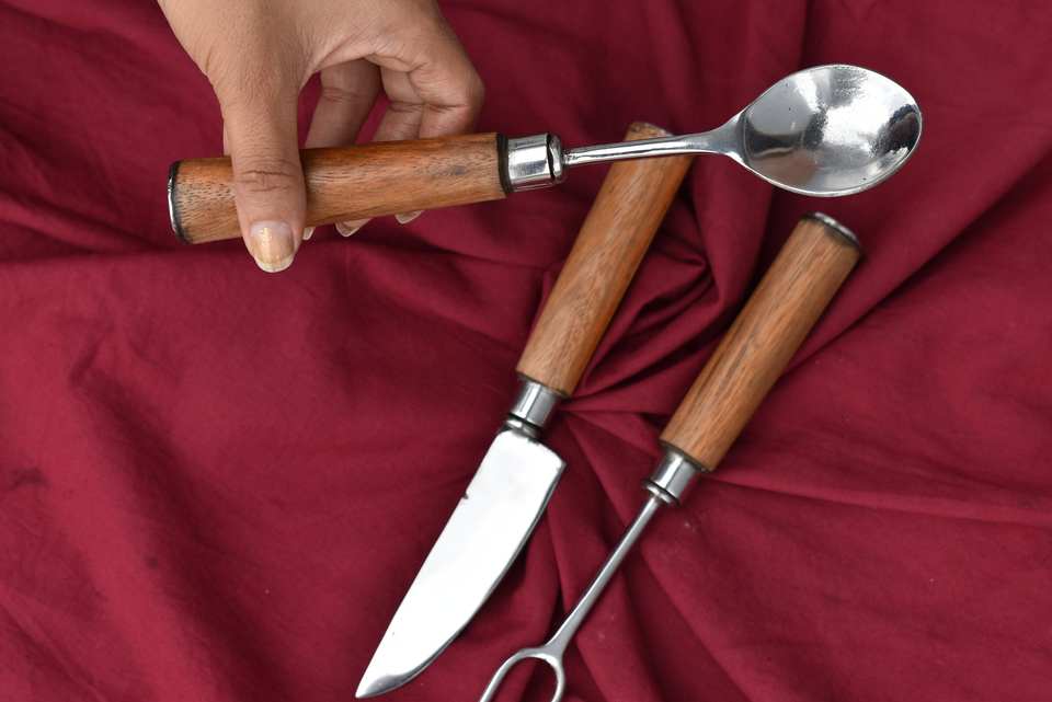 Ensemble de couverts faits à la main meilleur cadeau lame en acier à haute teneur en carbone couteaux fourchette cuillère manche en bois OEM personnalisable pour hommes/femmes pour le nouveau