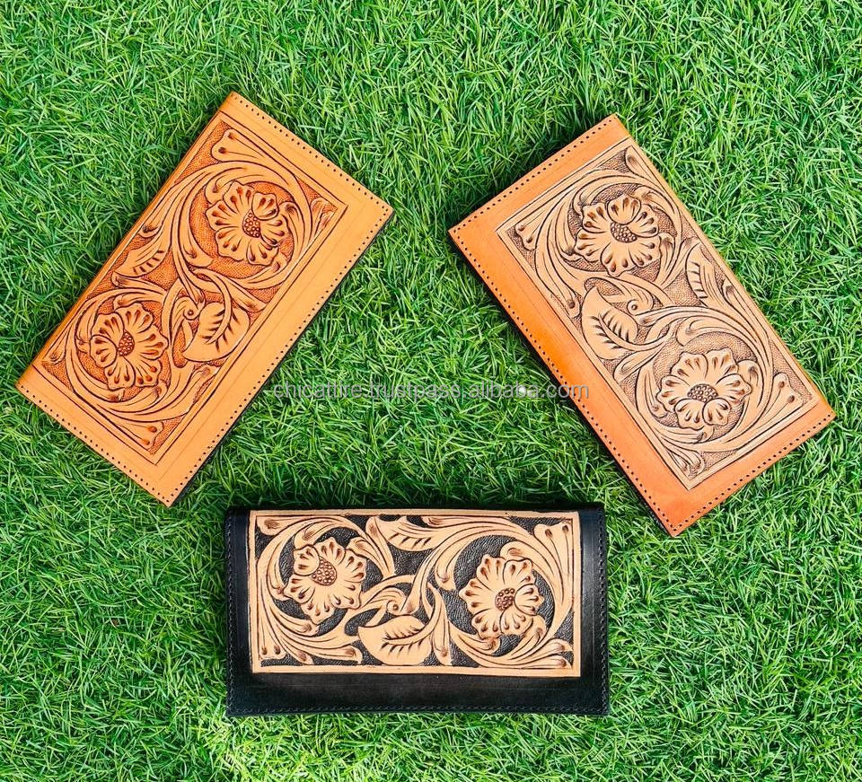 Handmade Best Seller Cowgirl Genuine Leather Floral Hand Tooled Western Women Wallet With Hand Carved Latest Women Luxury Wallet