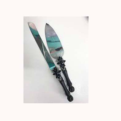 Ensembles de couverts en vrac faits à la main Meilleure vente en acier inoxydable Métal plaqué argent avec poignée en résine noire Designer