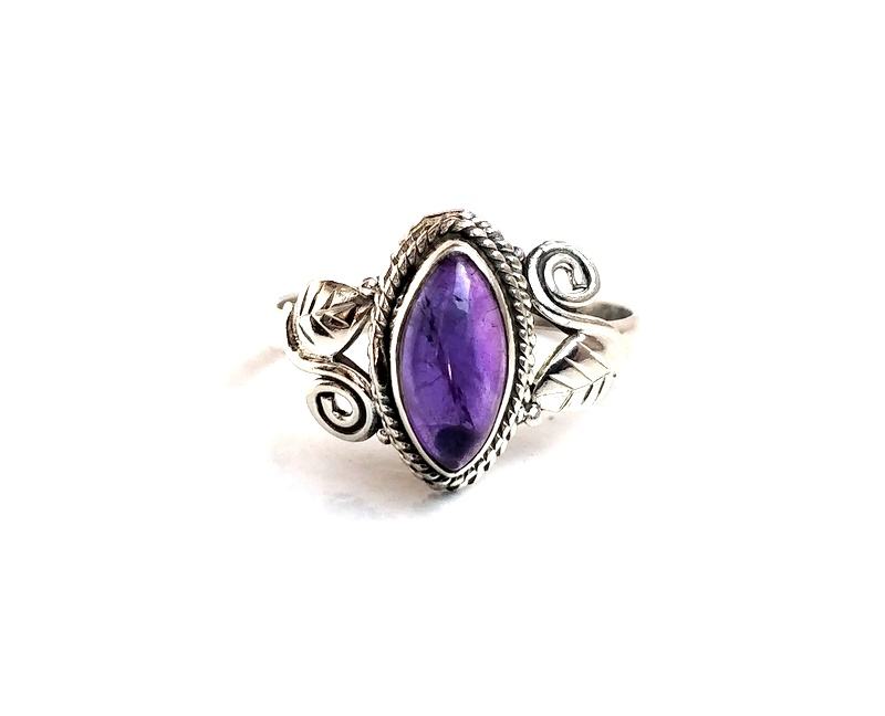 Bague d'assise à lunette faite à la main avec pierre d'améthyste véritable bague d'améthyste en argent sterling 925 bijoux cadeaux avec incrustation de réglage unique