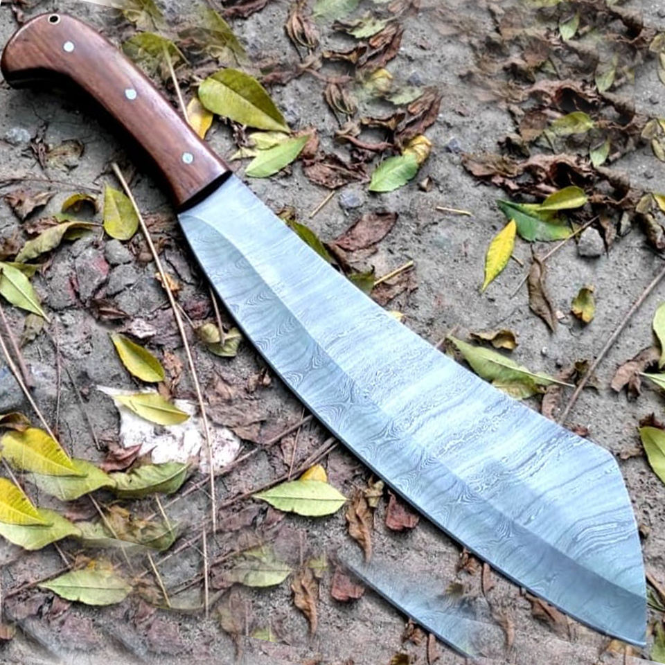 Couteau à viande Full Tang en acier damas fait à la main avec manche en bois et gaine en cuir