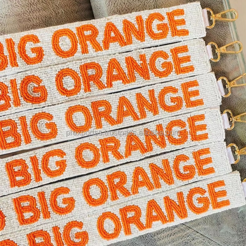 Fait à la main grand Orange perlé sac sangle texte personnalisé Vintage Style professionnel bandoulière sac à main sangle remplacement crochet en gros