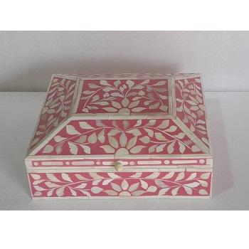 Organisateur de stockage décoratif fait à la main en noir et blanc motif floral boîte à bijoux en bois incrustée d'os durable au meilleur prix
