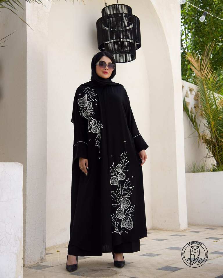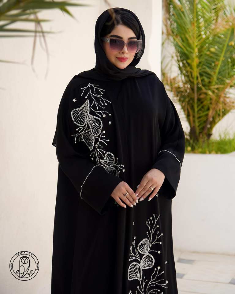 Handmade Black Crystal Long Sleeve Abaya for Adults Classy Silk Elegant Handwork Anti-Wrinkle Prayer Occasion All Seasons High
