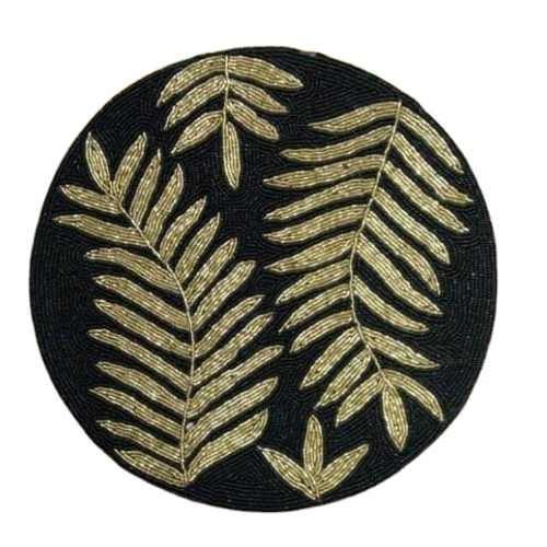 Chemin de table à manger noir fait à la main feuilles d'or conception fantaisie perlé napperons pour mariage décor à la maison chemins de table décoratifs