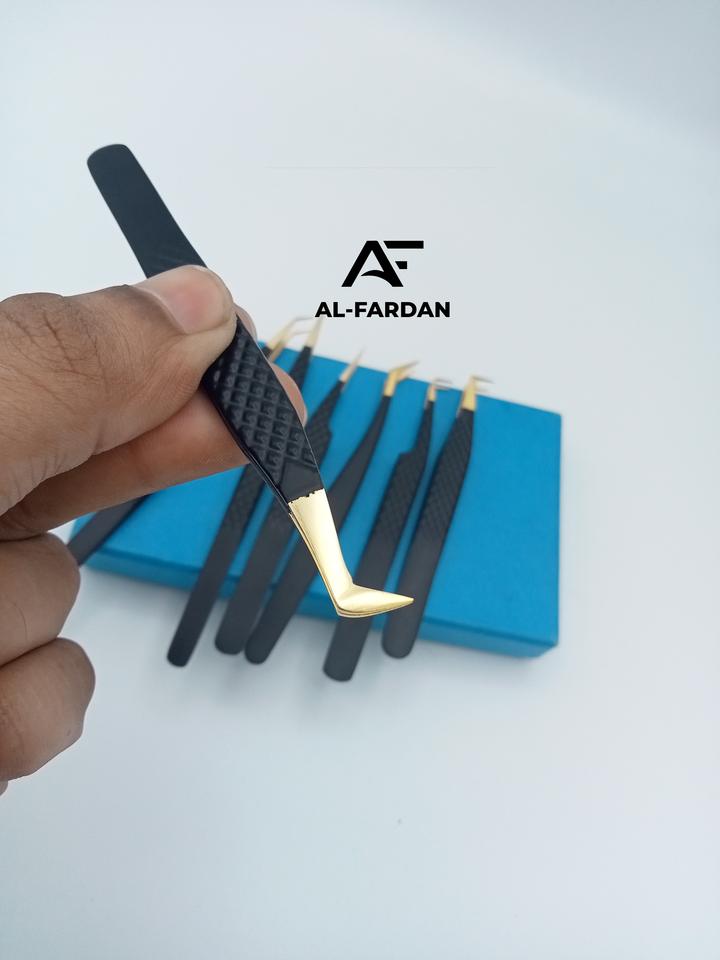 Pince d'extension de cils en acier inoxydable noir et doré faite à la main Logo personnalisé Fibre Nano Grip avec pointe pointue
