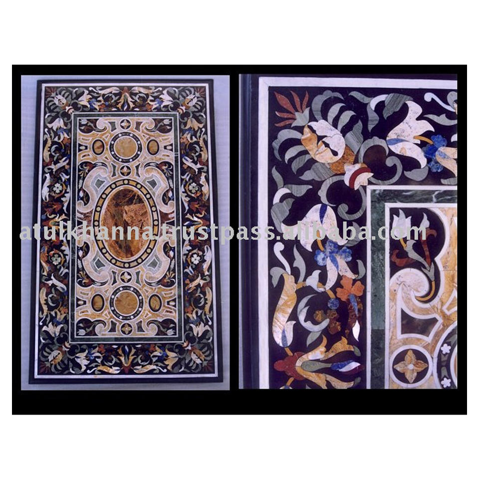 Noir fait main de Table En Marbre, Pierre Incrustation Table de Travail