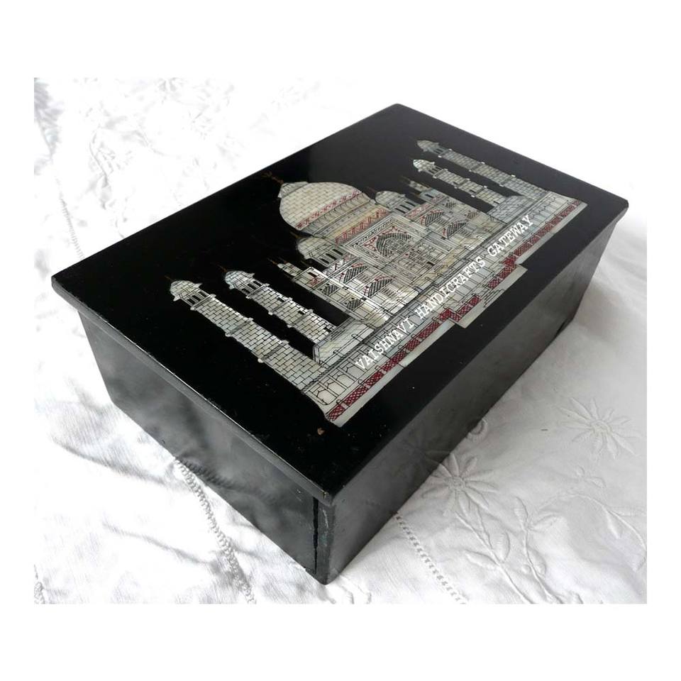 Handmade Black Marble With Beautiful MOP Inlay Taj Design Jewelry BoxProduct name