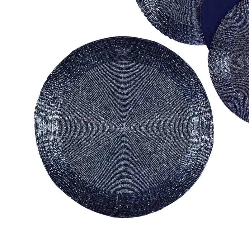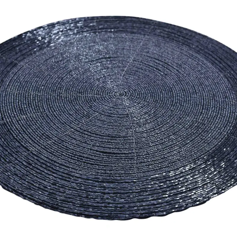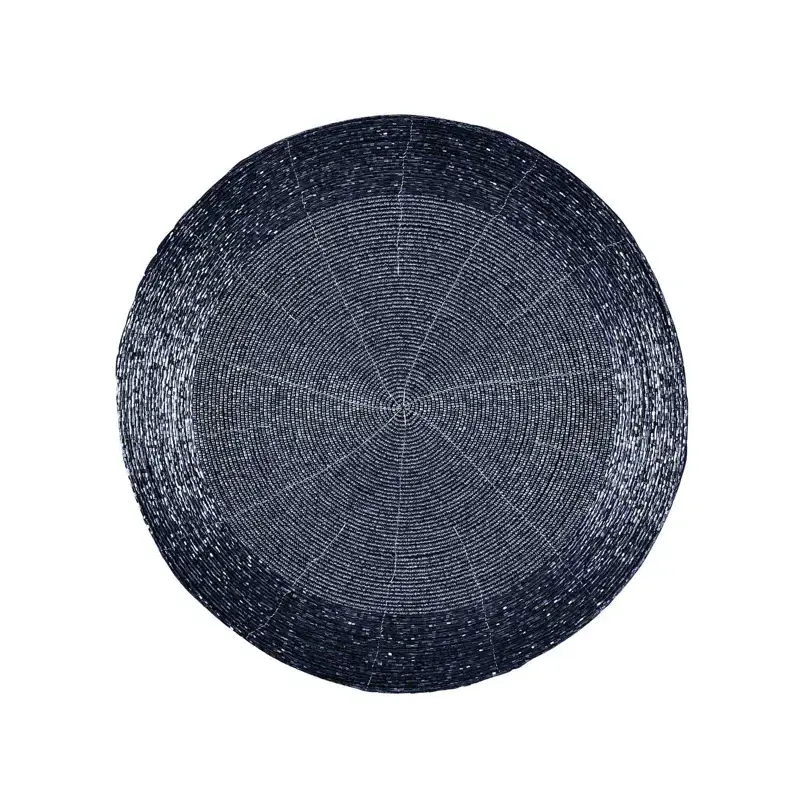 Chemin de table perlé rond noir fait à la main article de décoration de maison brodé floral pour mariage ou table à manger
