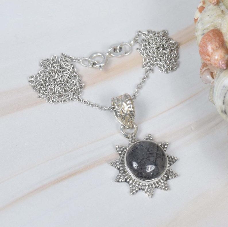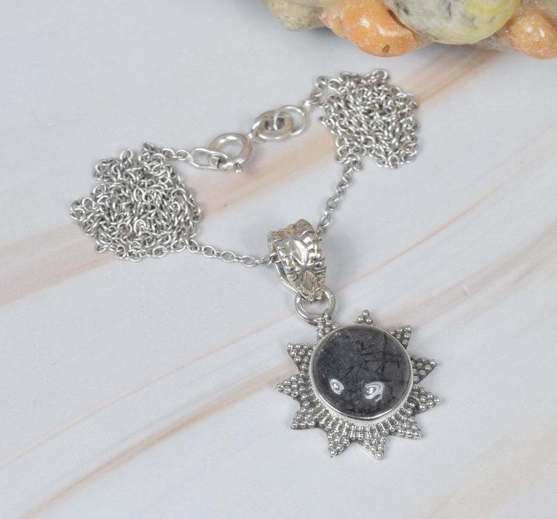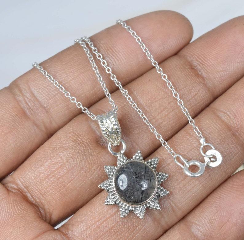 Pendentif en argent sterling 925 plaqué or avec rutile noir fait main, en forme de crochet, bijou de créateur, cadeau pour femme