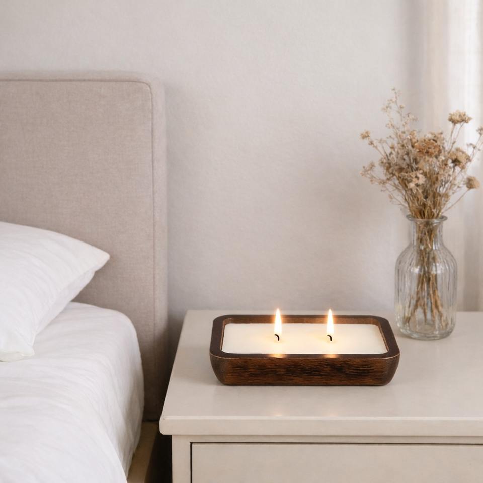 Porte-bougie artisanal en noyer noir pour la décoration de la maison, fruits secs, collations, thé et café