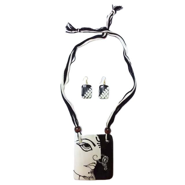 Ensemble de colliers en tissu noir et blanc faits à la main, imprimé avec un motif fantaisie de visage, fil coloré, avec perle et diamant, cadeau d'anniversaire