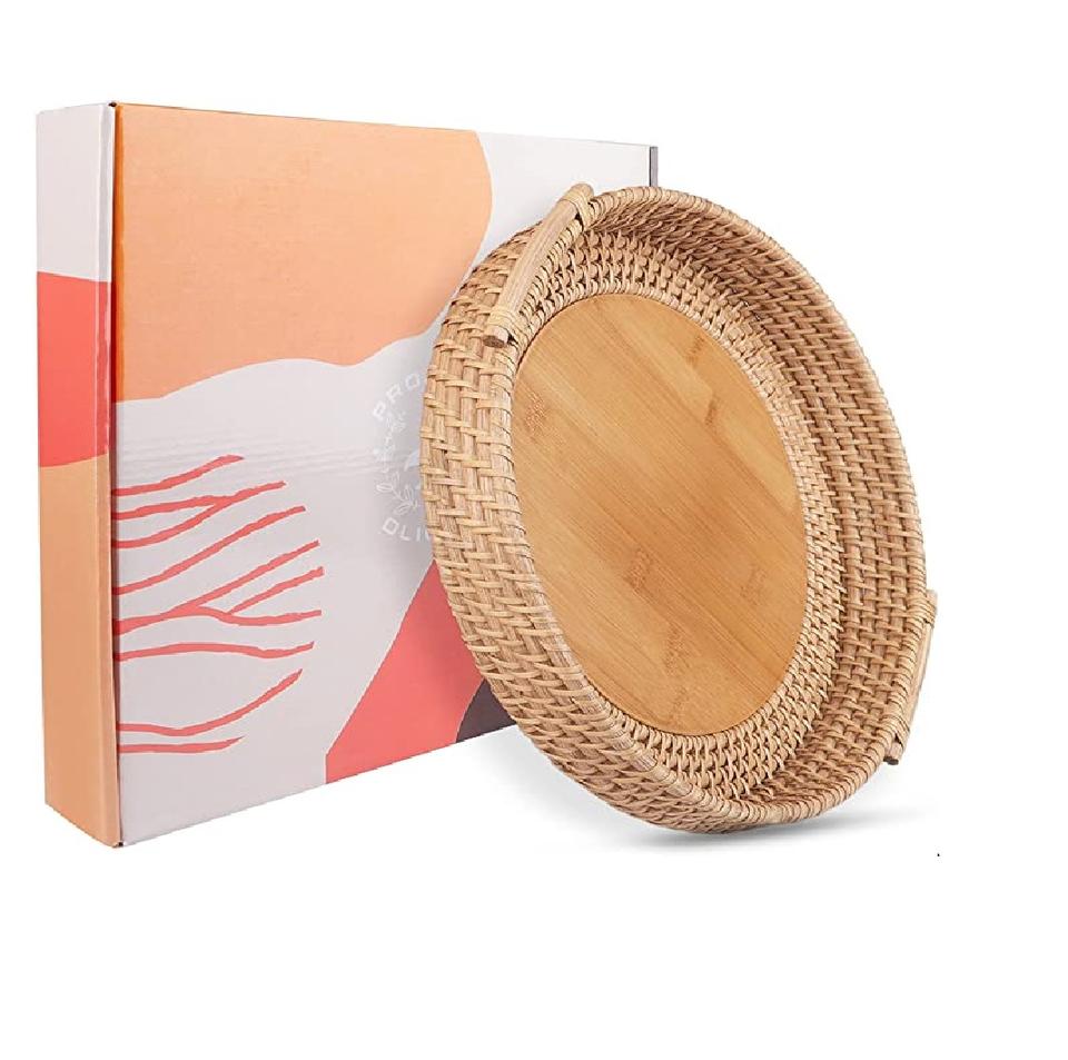 Plateau de service en rotin noir et marron fait à la main, forme de pain tissé de qualité exclusive, conception simple, idéal pour servir le Ramadan Eid