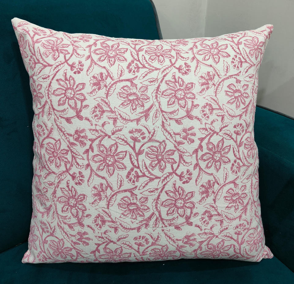 Housse de coussin en coton imprimé de blocs faits à la main avec des motifs floraux symétriques pour un style élégant de salon et de chambre à coucher