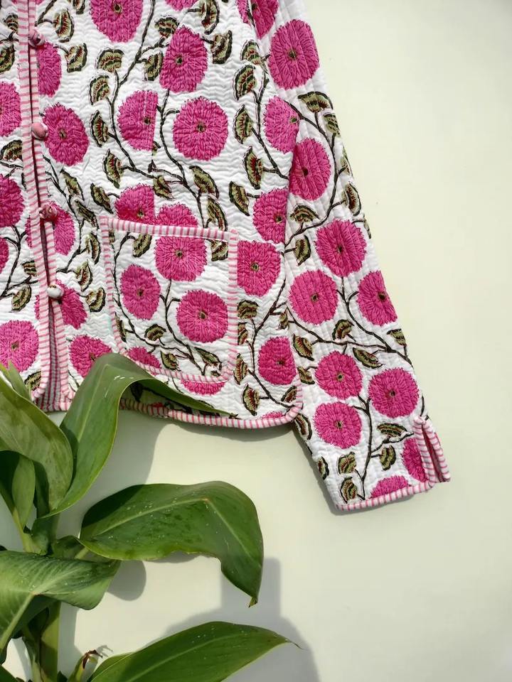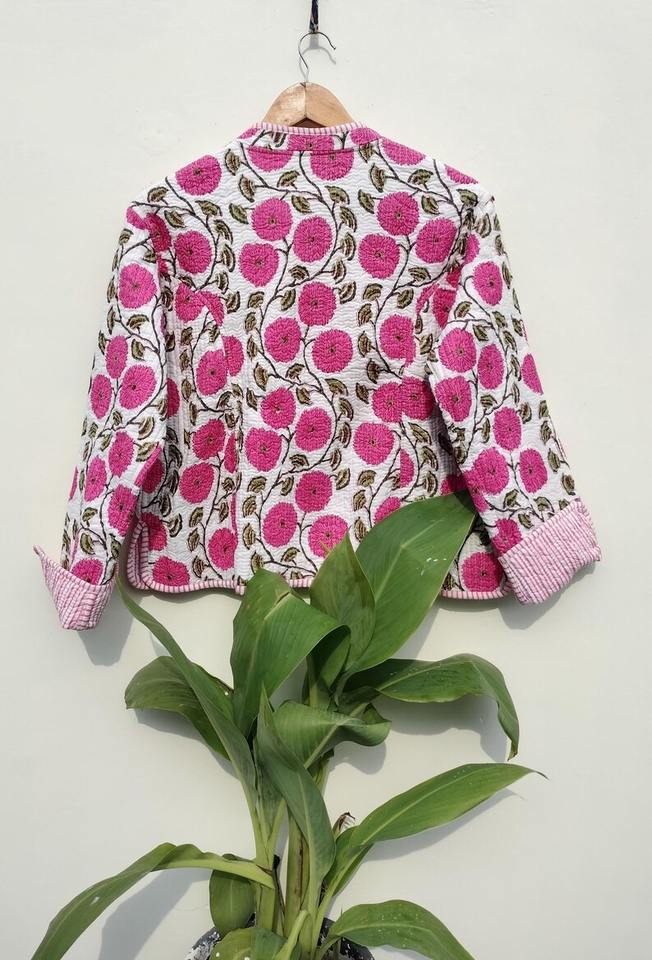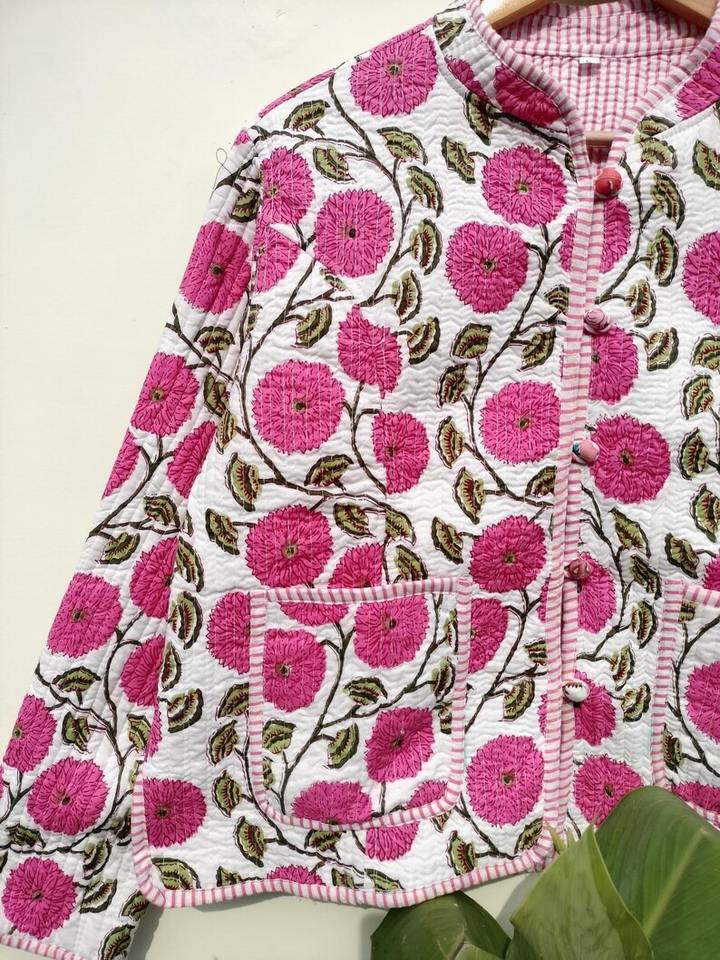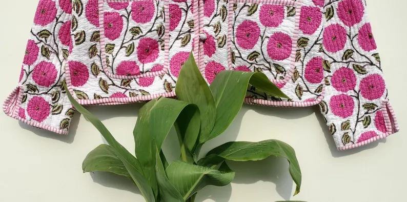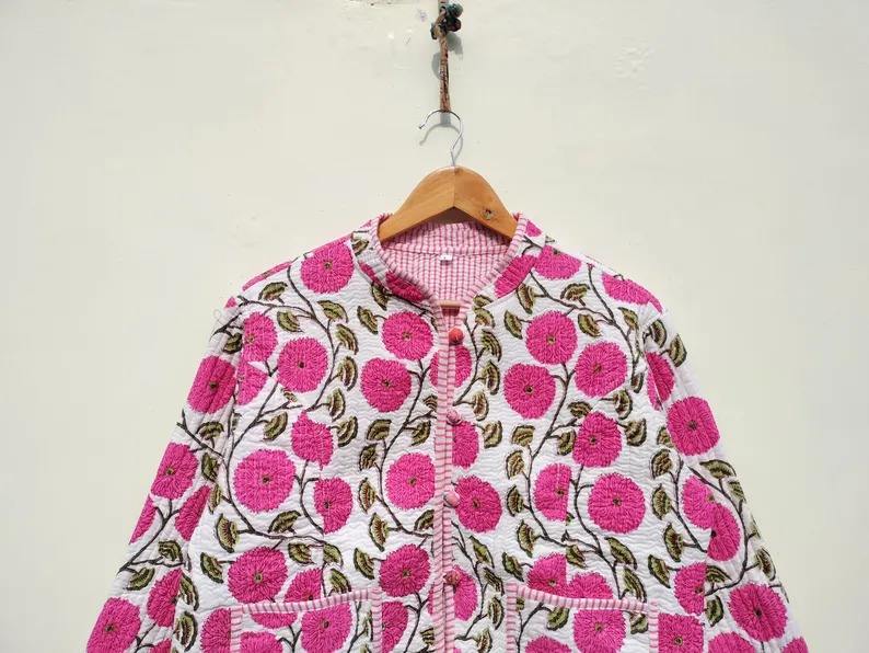 Veste matelassée réversible faite main à imprimé floral en coton pour femme, idéale pour l'hiver et toutes les saisons