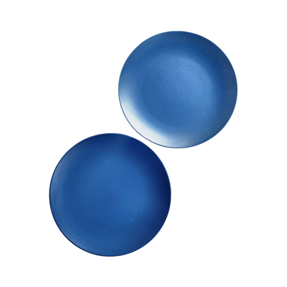 Bols en céramique de 8 pouces bleus faits à la main Paire d'assiettes et d'ustensiles de cuisine au fini brillant