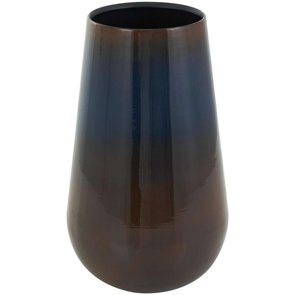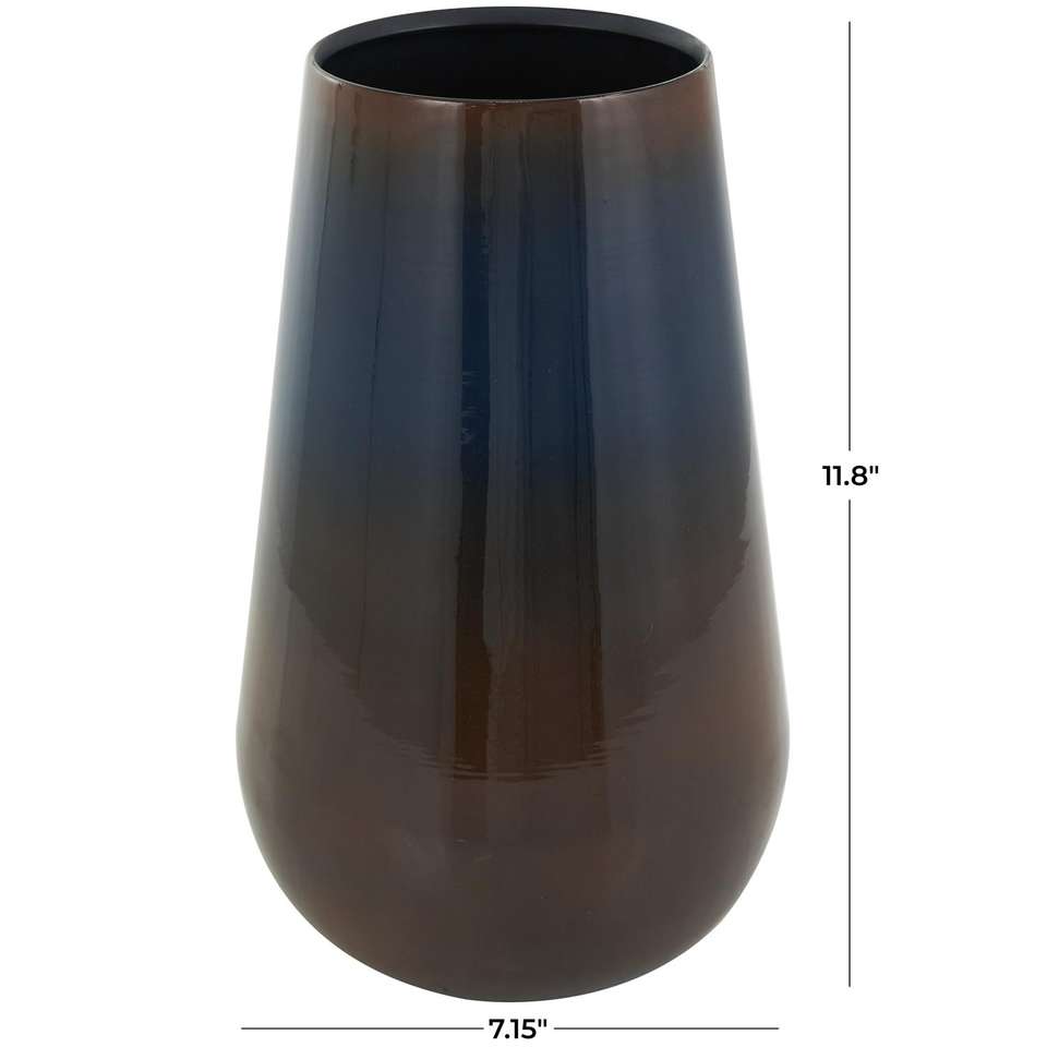 Handmade Coastal Blue Iron Table Top Vase Brown Accents 7" X 7" X 12" Luxury Flower Pot Natural Real Touch High Quality