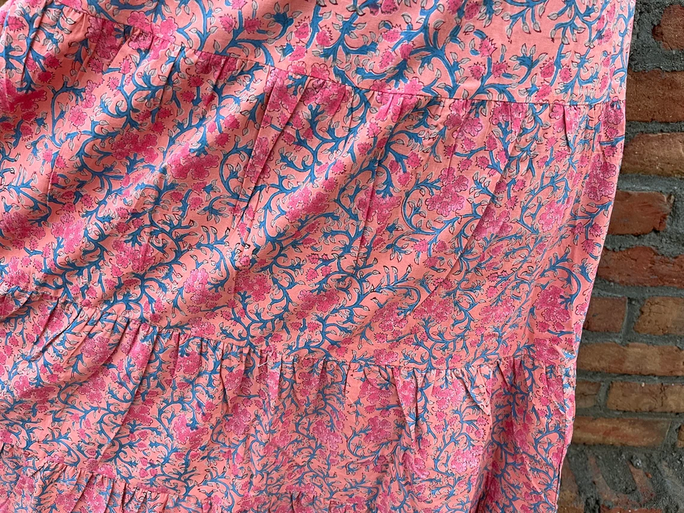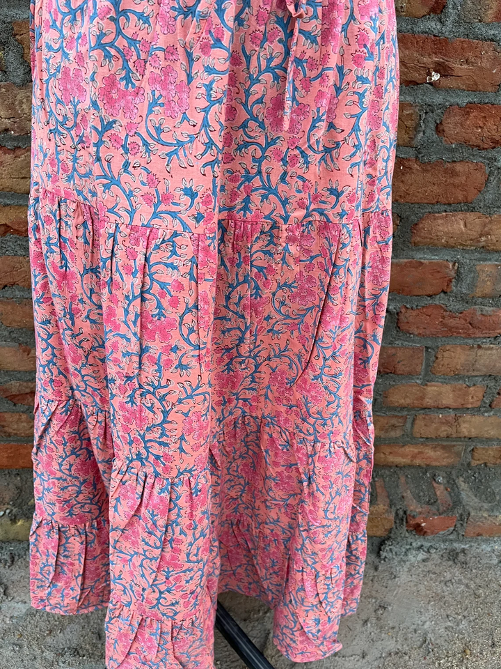 Robe en coton imprimée bloc de jupe Maxi bohème faite à la main pour les femmes décontracté taille élastique à plusieurs niveaux gitane respirant non tissé gland