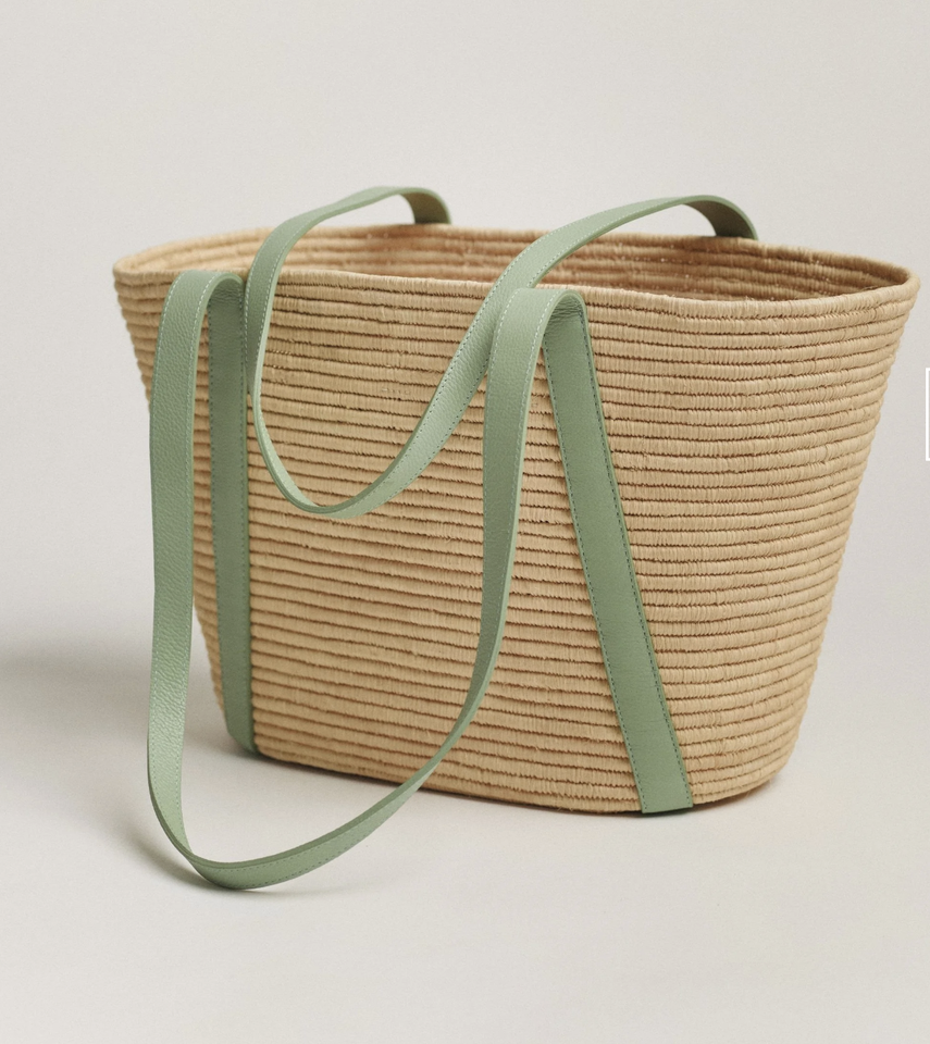 Grand panier de marché en paille de style bohème fait à la main, sac de plage ouvert tendance, deux bretelles en cuir, robe pour femme