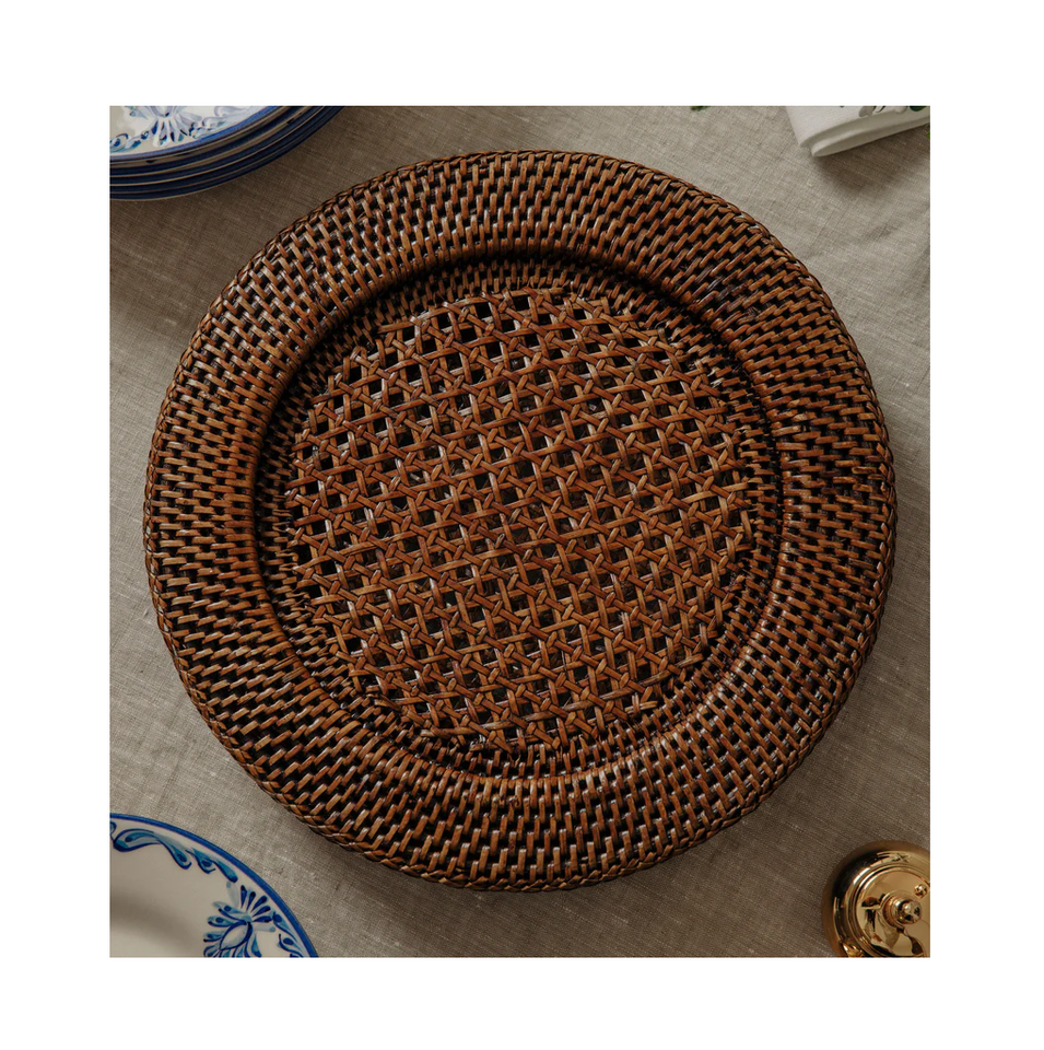 Assiette de charge Boho faite à la main avec napperon en rotin Offre Spéciale au design floral Assiette de charge gravée naturelle de haute qualité