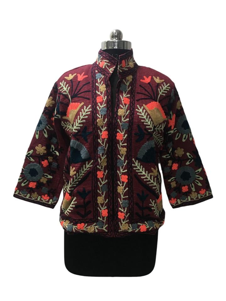 Fait à la main Boho Chic multicolore Suzani brodé coton veste pour femmes respirant Style traditionnel Floral Design veste